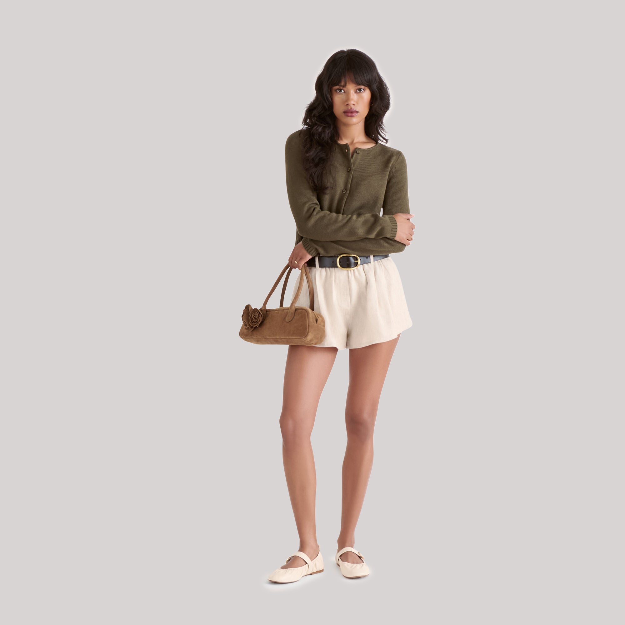 BORACAY’s chic silhouette in luxe brown suede instantly levels up your daytime looks. Customize this shoulder bag to your mood by switching between understated and head-turning with her removable flower charm.