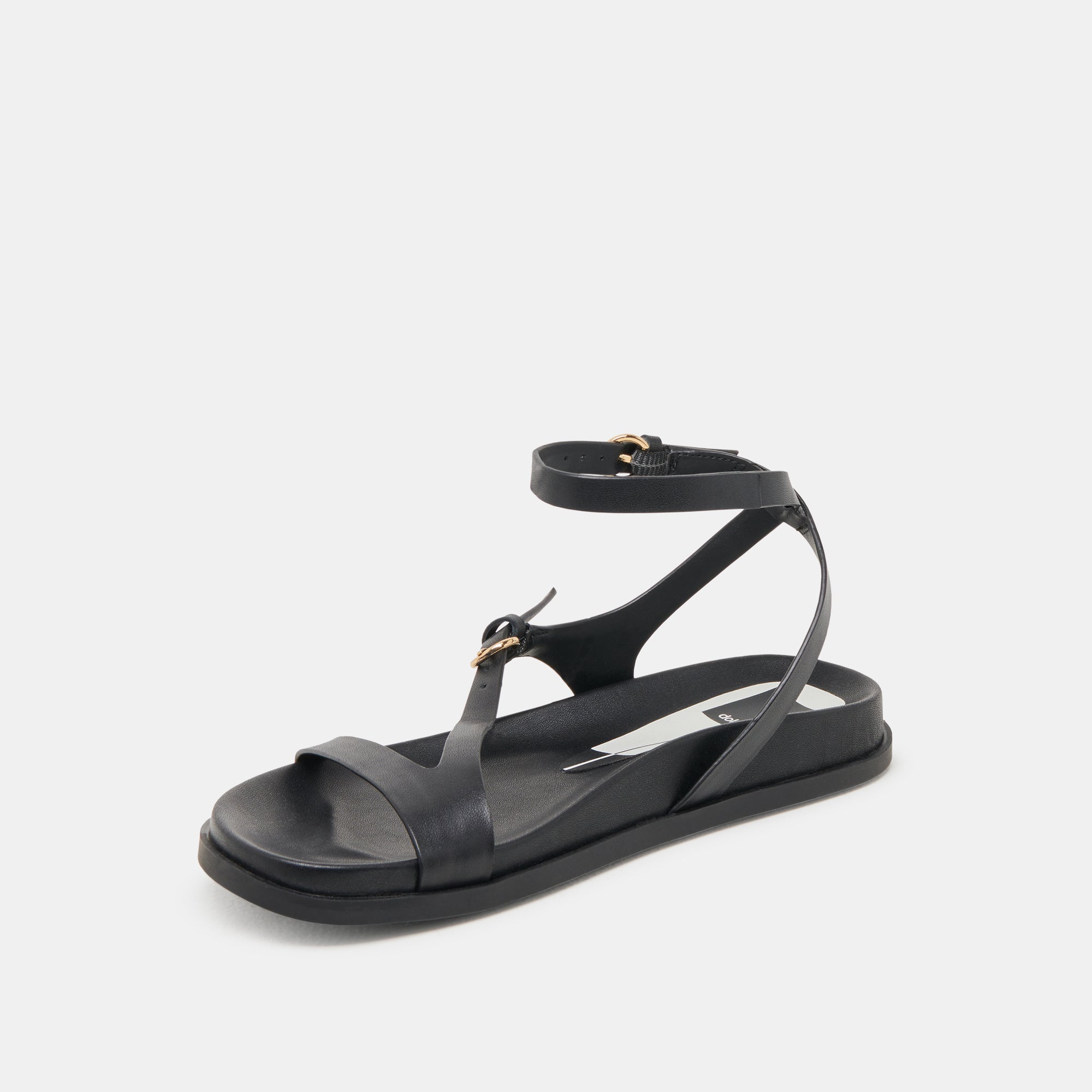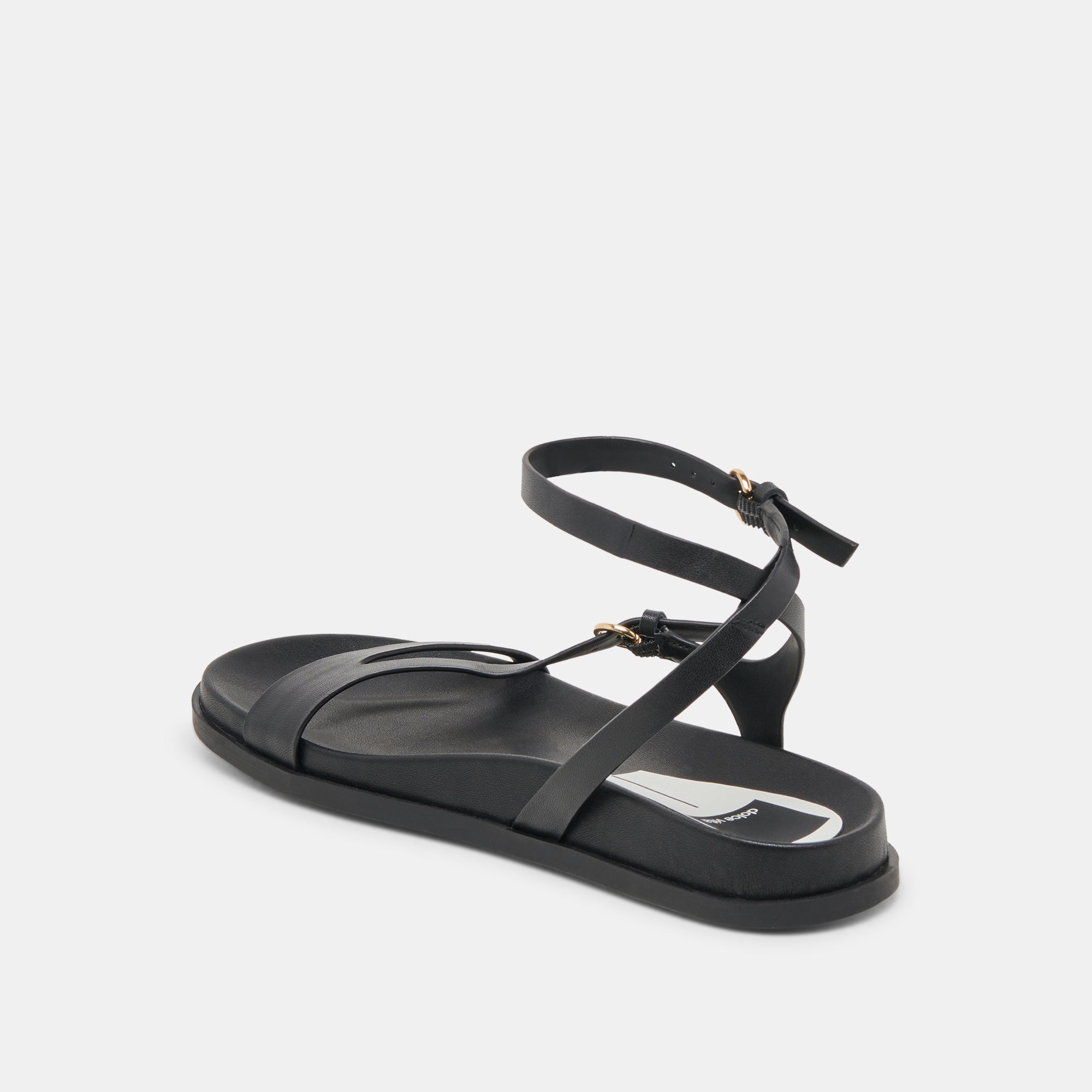 Enter DARLIS. This strappy sandal features a contoured footbed for all day comfort. and two adjustable straps so you can stay secure and supported all spring and summer long. Snag this darling leather sandal in black. bone. or gold.