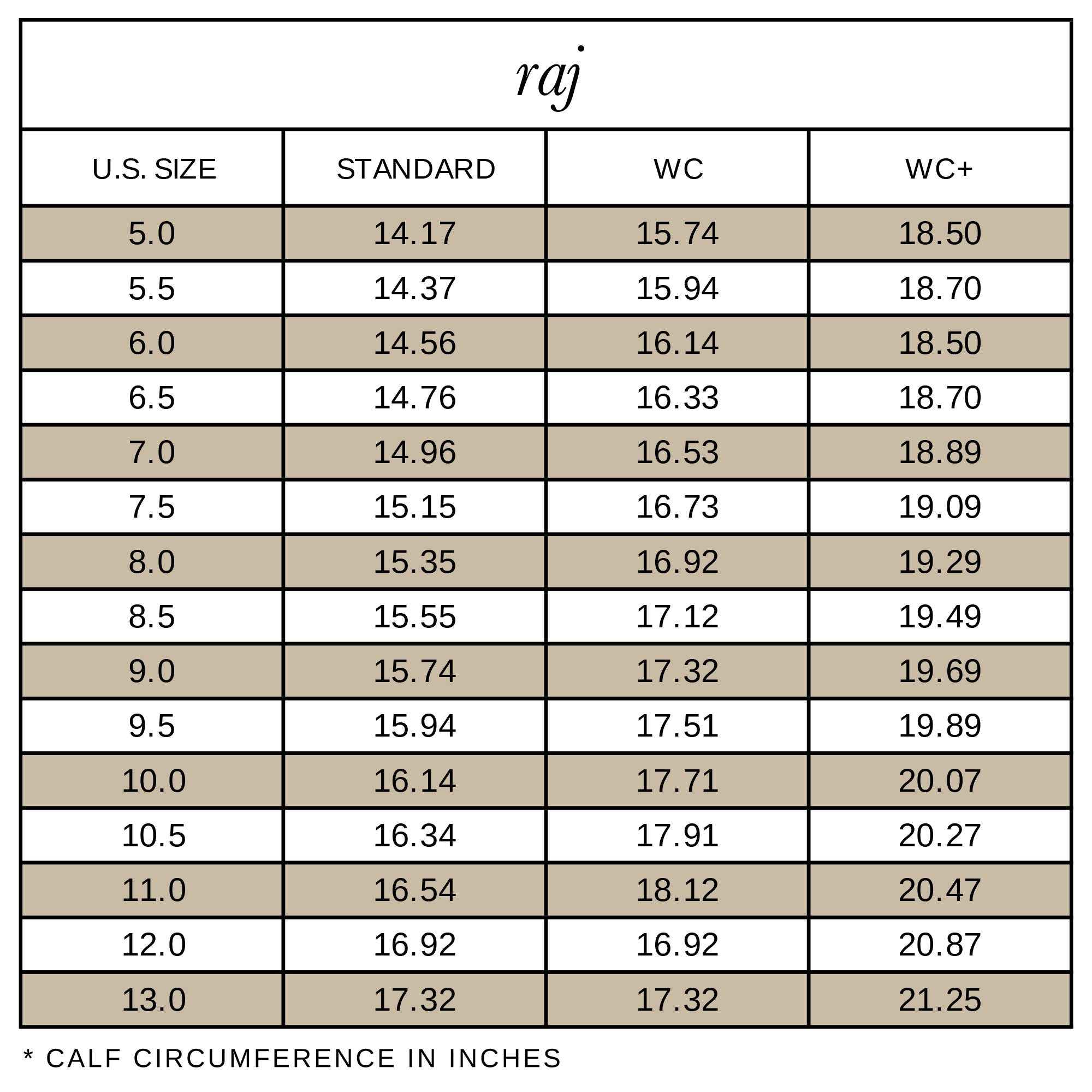 - Please refer to RAJ size guide in image position 6 for individual calf size measurements.