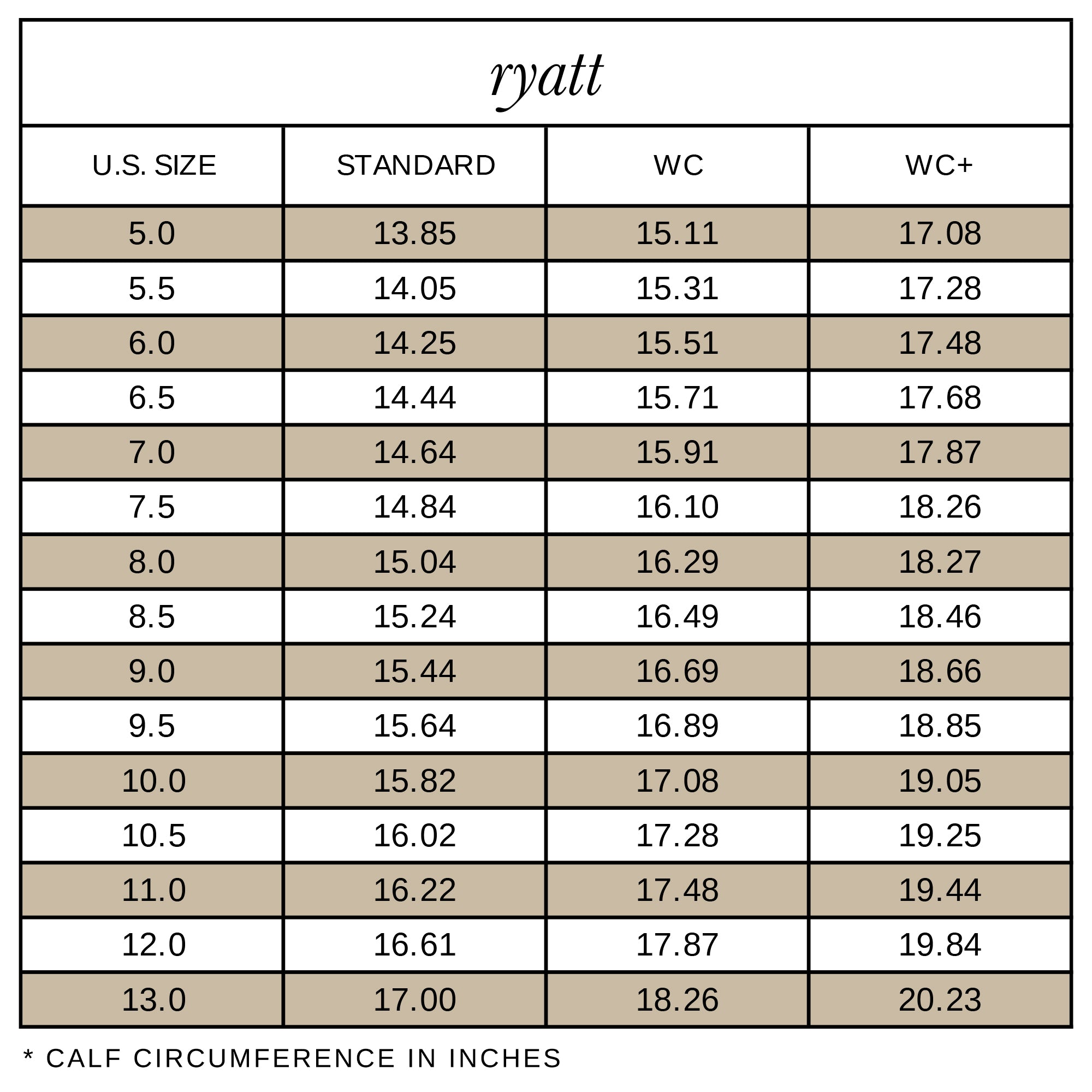 - Please refer to RYATT size guide in image position 5 for individual calf size measurements.