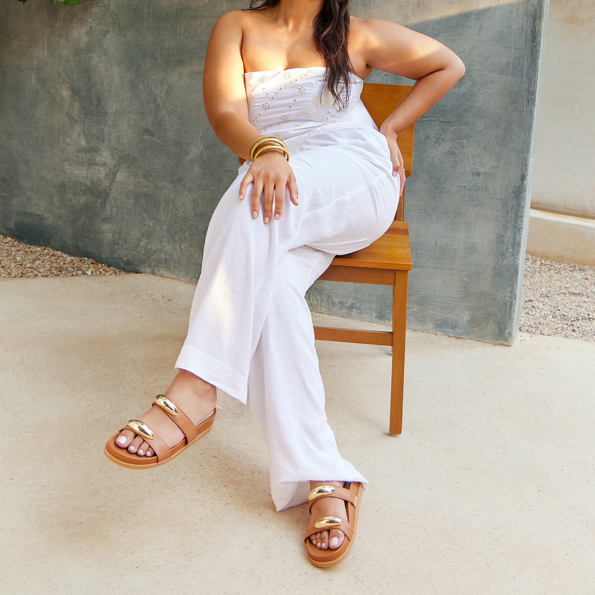 SATINE’s minimalist leather straps are topped with metal hardware that levels up your casual looks. Her extra comfy contoured footbed and versatile colorways are made for everyday wear.